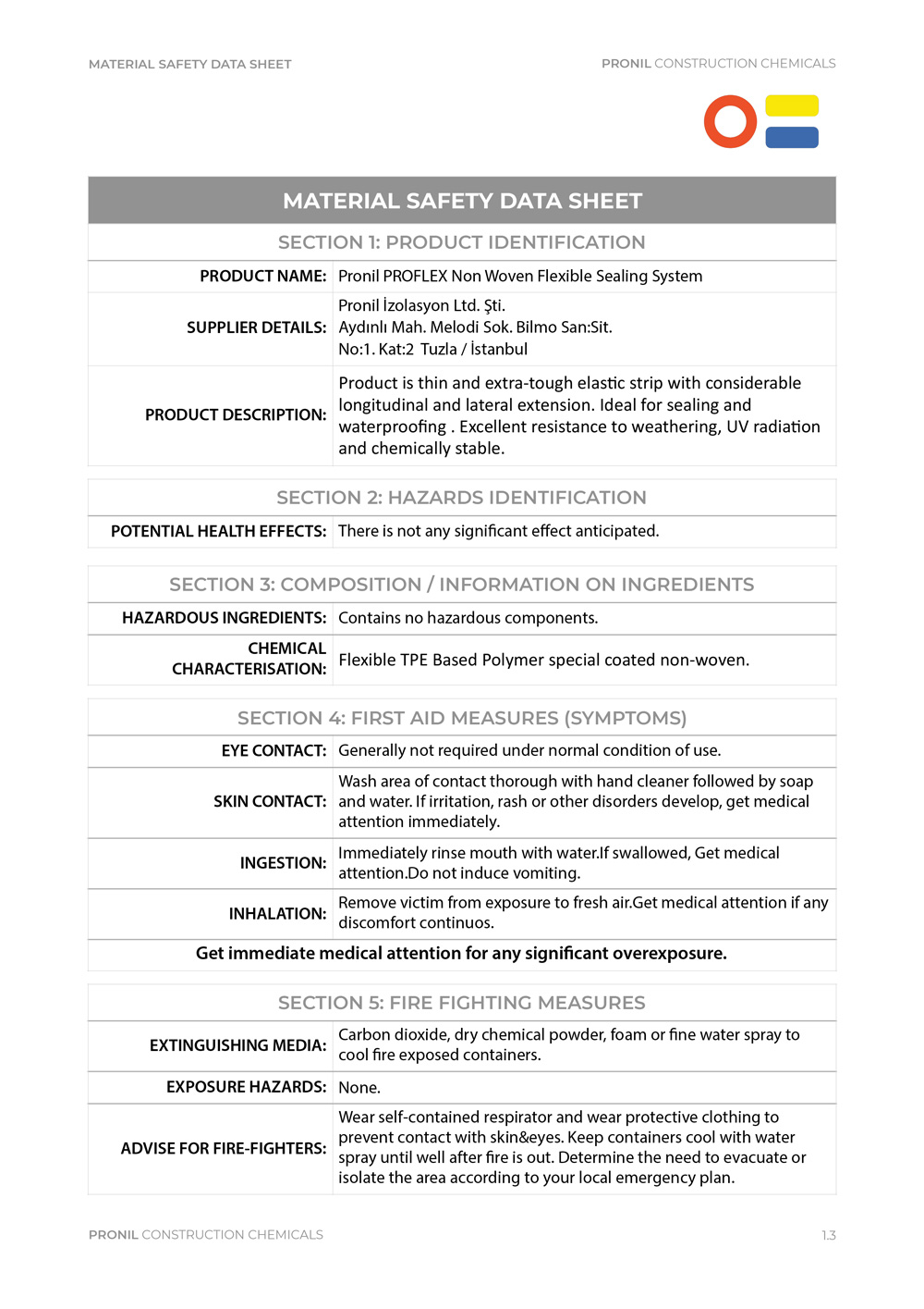 PRONIL-PROFLEX-NON-WOVEN-MSDS